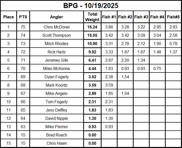 Tournament Results